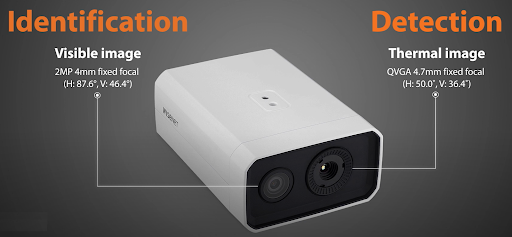 Модель TNM-3620TDY оснащена искусственным интеллектом, видео и аудио-аналитикой, QVGA тепловизором, 2Мп IP камерой и может работать в двух режимах: Estimated Body Temperature Mode и Radiometric mode. Тепловизор осуществляет детекцию температуры, а IP камера - идентификацию объекта в кадре.
