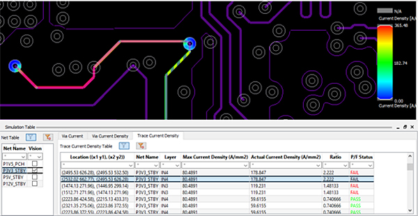 - DC PI анализ измеряет любое падение напряжения. Результаты могут быть визуализированы в виде напряжения, падения напряжения или плотности тока. Дизайнеры могут изменить дизайн и быстро увидеть влияние своих изменений, даже не покидая проектной среды Allegro PCB.