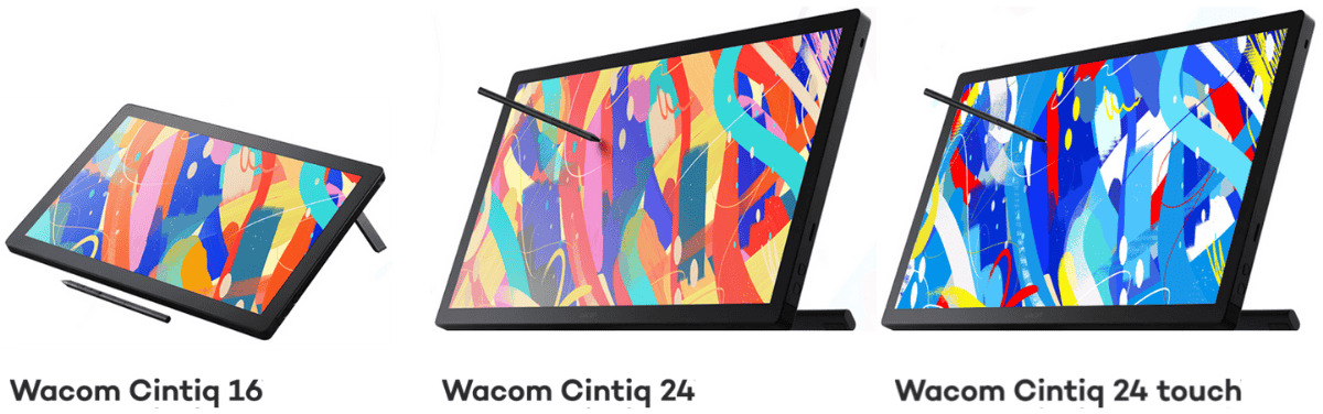 Available in 16.0” (2560 x 1600 resolution) and 23.8” (2560 x 1440 resolution) sizes, the Cintiq line includes Pen-only and a Pen & Touch model (23.8” only).