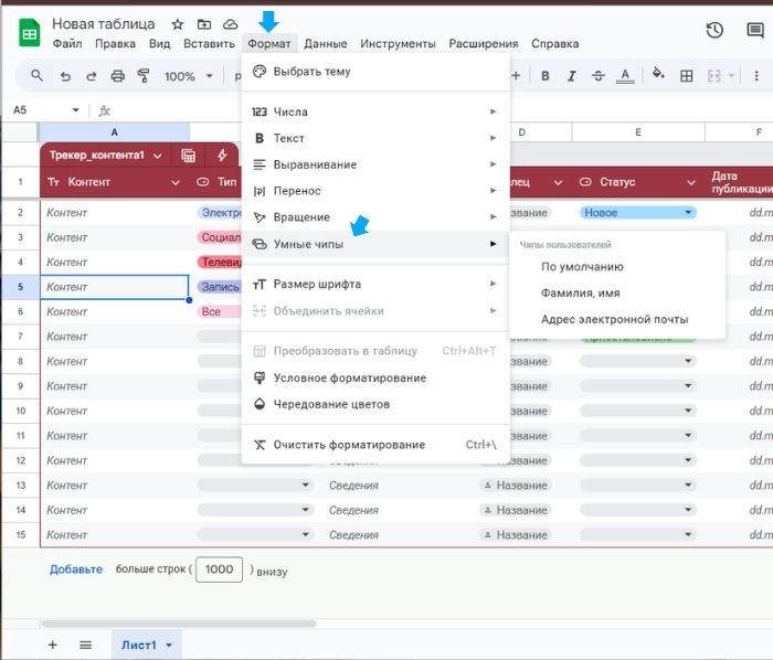 Google Sheets. Легко конвертируйте данные чипы пользователей и обновляйте формат чипов в Таблицах