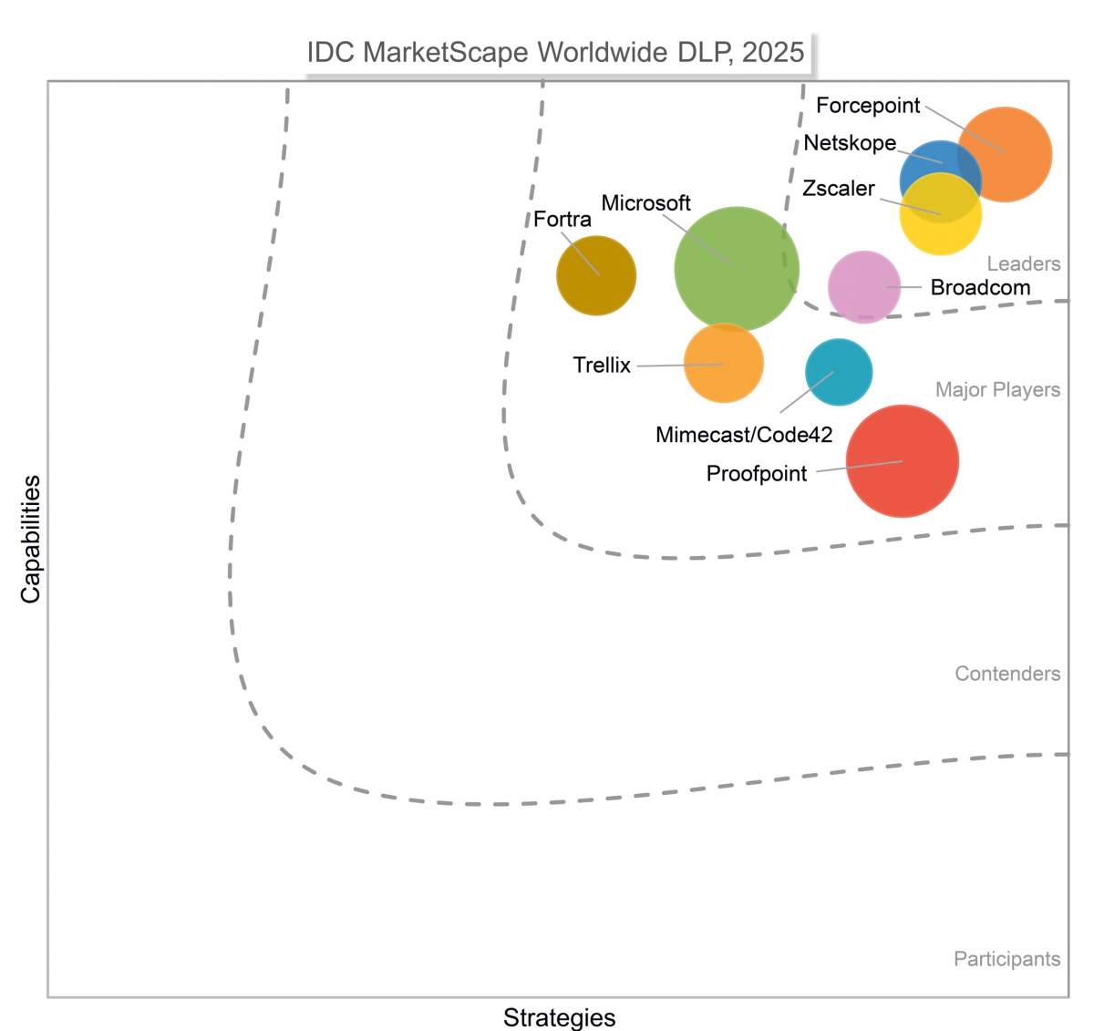 Звіт IDC MarketScape оцінює можливості та стратегічне бачення дев'яти світових постачальників DLP. Звіт IDC MarketScape оцінює 19 критеріїв, які охоплюють такі області, як виявлення та класифікація даних, DSPM/mapping, управління внутрішніми ризиками, правомірність і звітність.