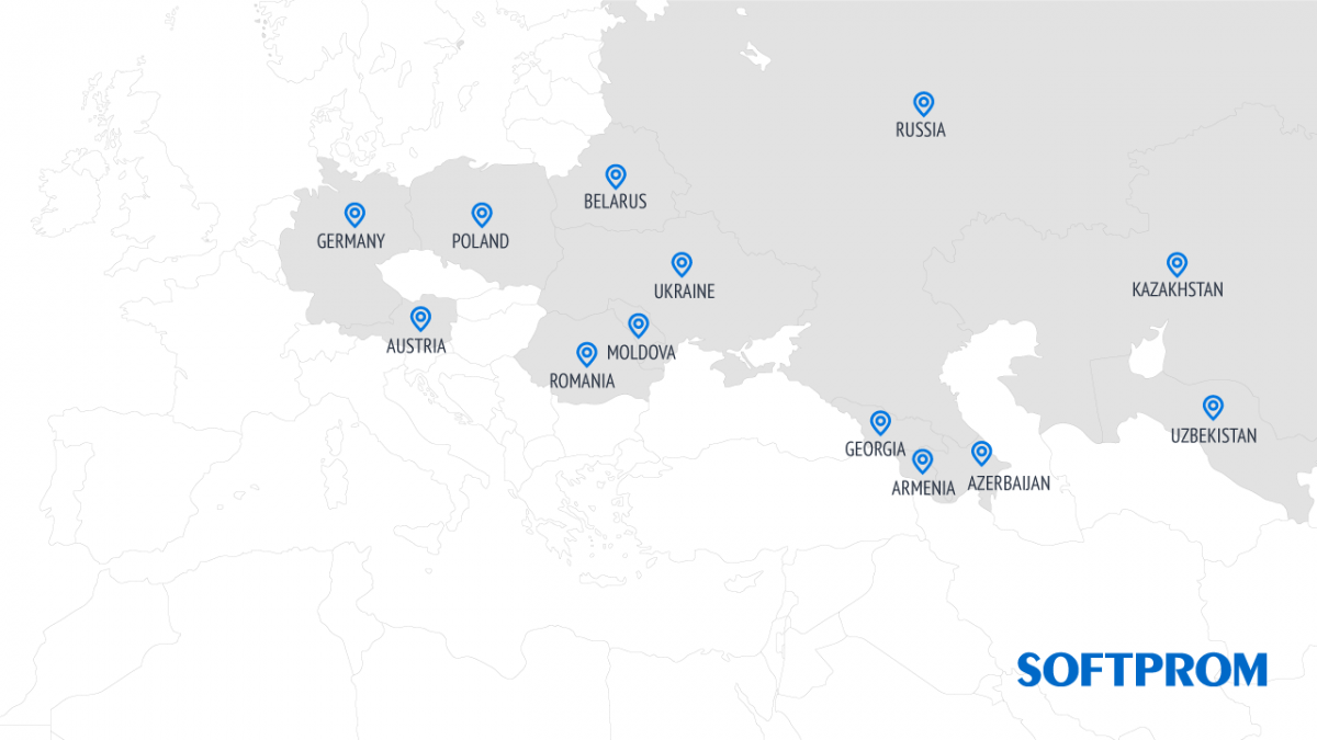 From a business perspective, Softprom is the only distributor that can act in four major regions: DACH (Germany, Austria, Switzerland), CEE (Central and Eastern Europe), CIS excluding Russia, and Russia. With offices and representatives in 13 countries, Softprom serves 33 markets in total today.