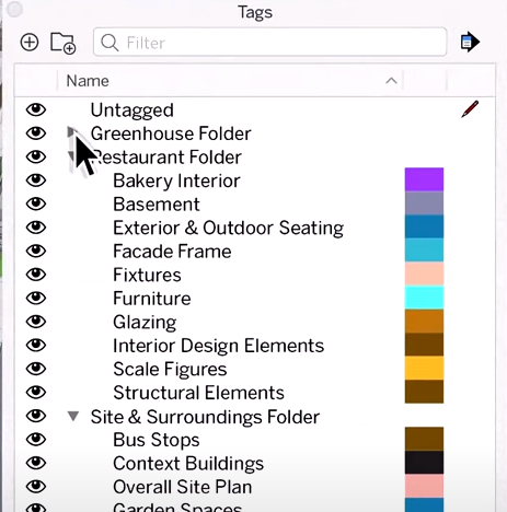4. В метках они же Тэги (ранее слои) можно создавать папки и искать по тексту. Папки можно сворачивать, разворачивать и скрывать, при скрытии скроются все метки (слои), которые были в папке.